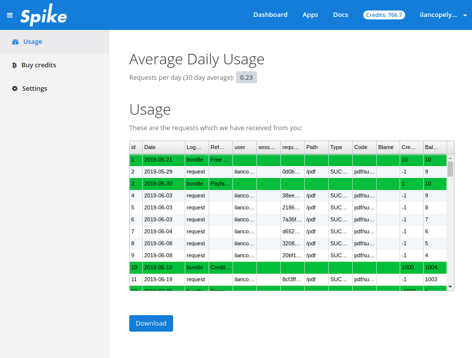 You can see how your credits have been deducted by looking at the usage table (opens new window). This lists all historic requests that you have made to date. It also shows your credit purchases (in green) e.g.