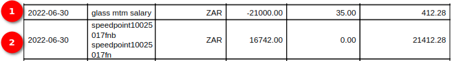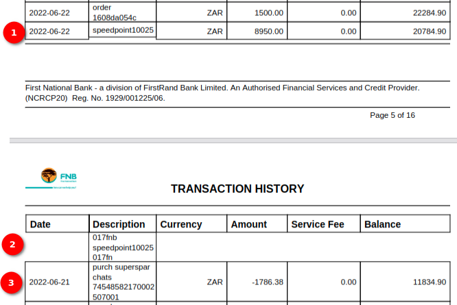 Our parser can't see the lines (and not all statements have grid lines anyway) so we need to work out which description lines go with which transactions - e.g. in the previous picture transaction 1 could include just the first line (glass mtm salary) or two lines (glass mtm salary + speedpoint10025) or three lines (glass mtm salary + speedpoint10025 + 017fnb).