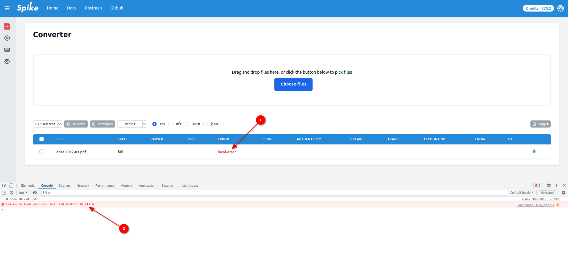 e.g. here we can see brave blocking the upload of a pdf - open the dev-tools (