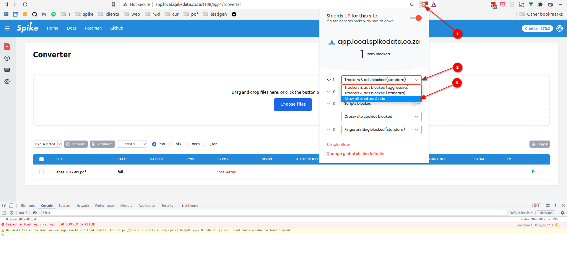 If you use an Ad blocker, or a browser with built-in ad-blocking (like brave (opens new window)) then you may get failures when you try to upload a pdf. The solution is to disable the blocker for spikedata.co.za.