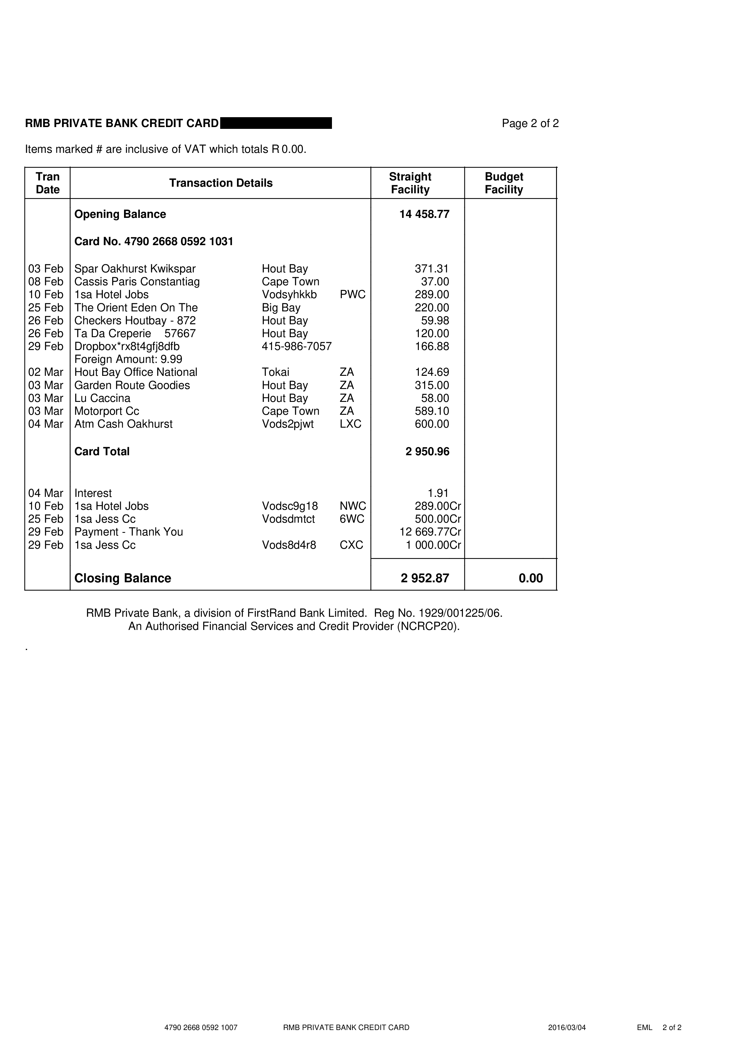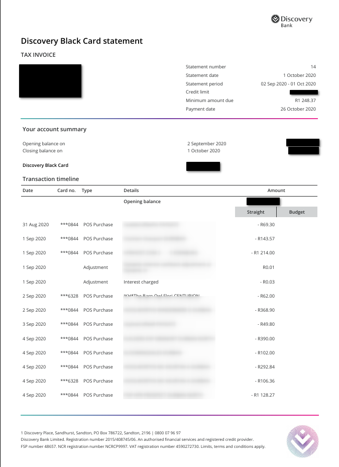 | NEDBANK | credit card | breakdown | NEDBANK_CREDITCARD |
