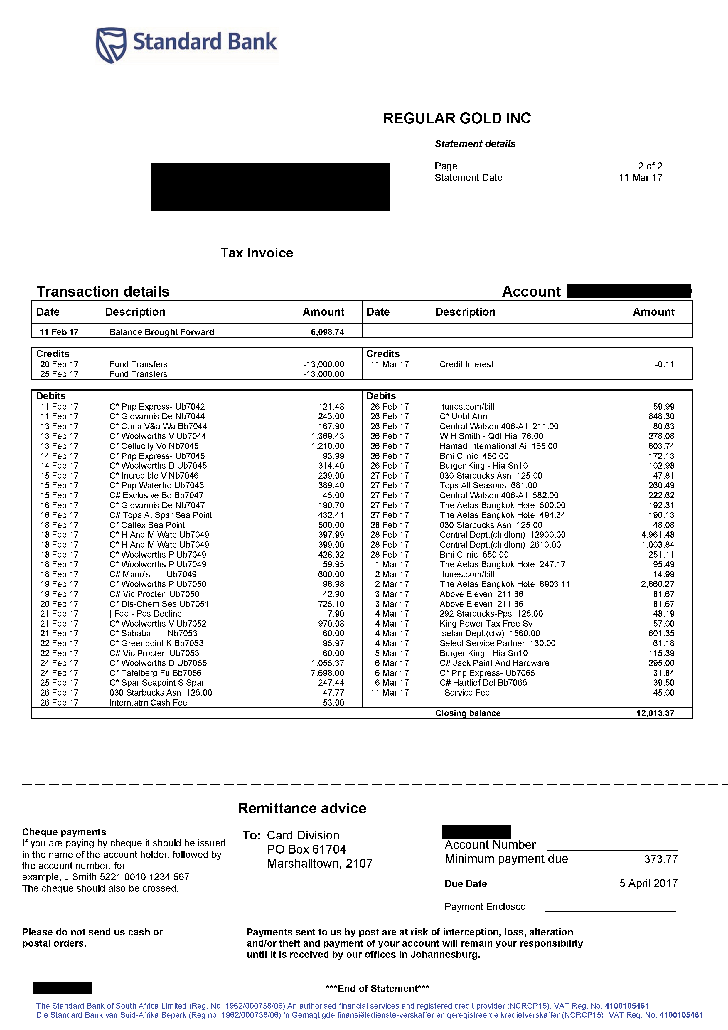 | STANDARDBANK | credit card | breakdown multi-user | STANDARDBANK_CREDITCARD |