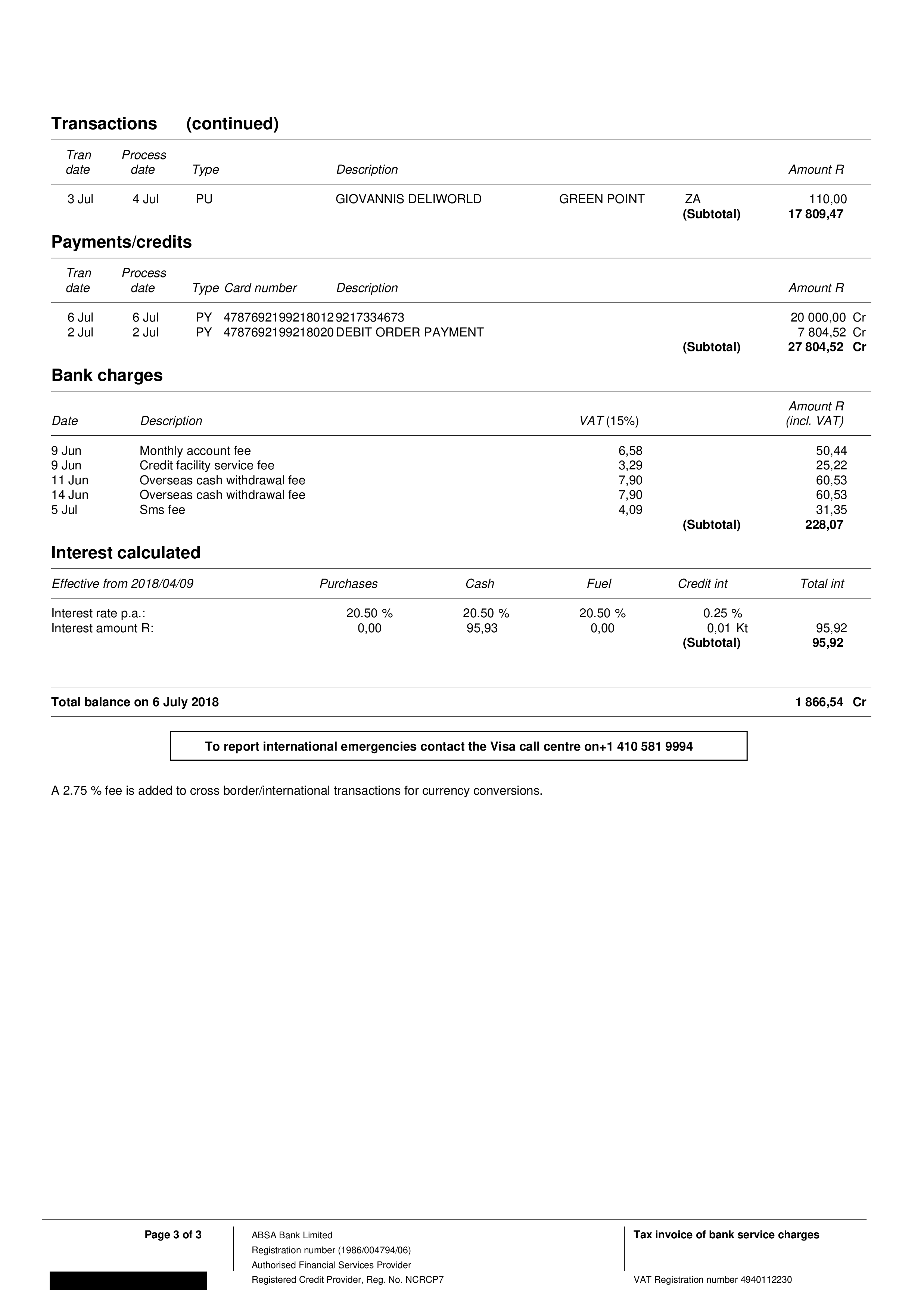 | ABSA | credit card | breakdown | ABSA_CREDITCARD_EMAIL_0 |