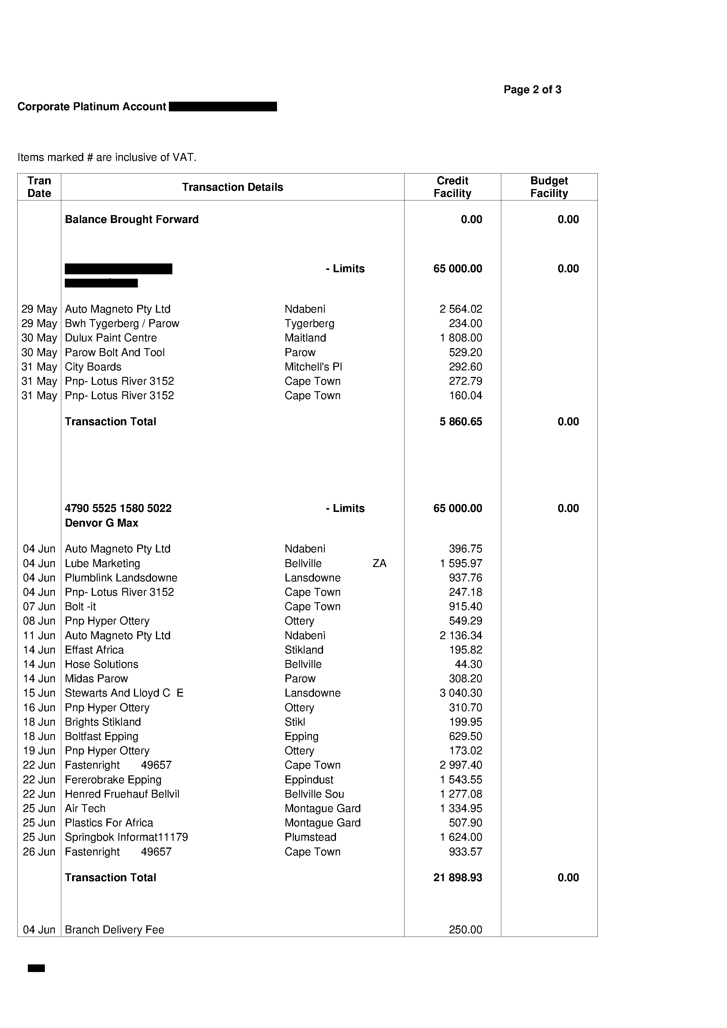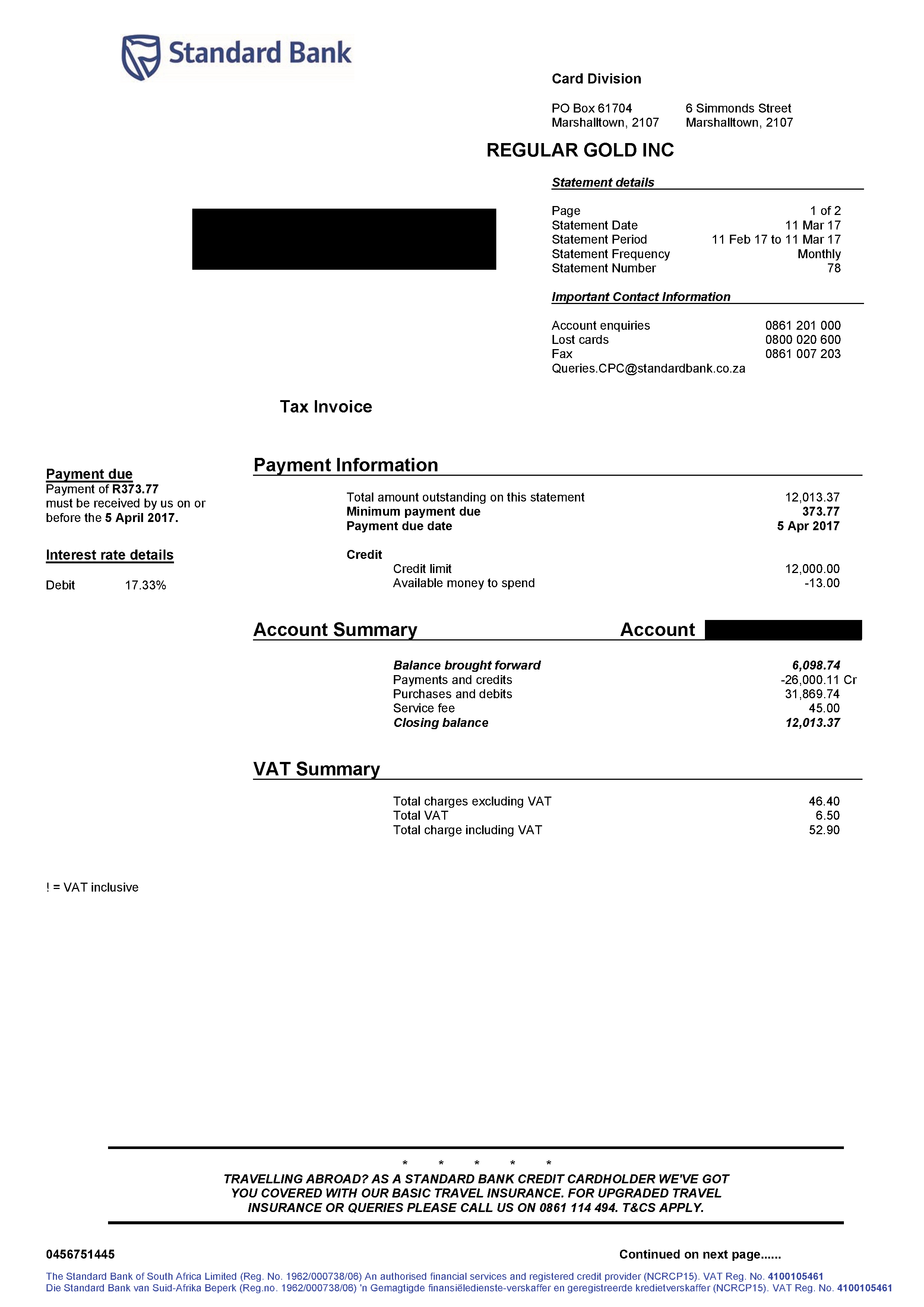| STANDARDBANK | credit card | breakdown multi-user | STANDARDBANK_CREDITCARD |